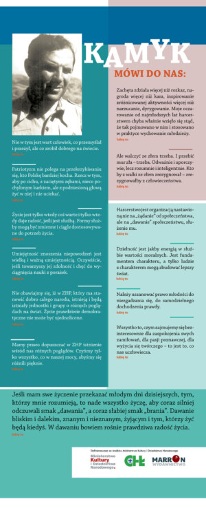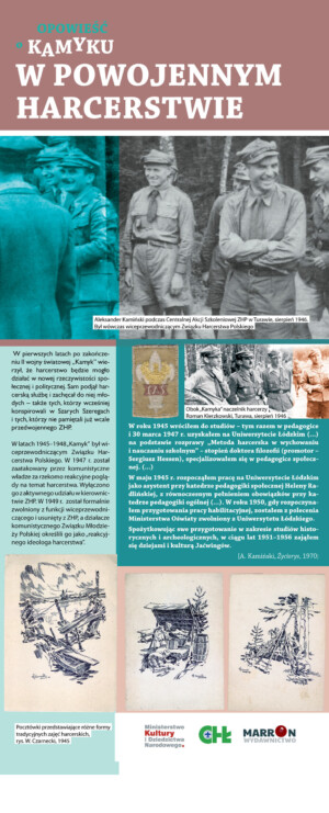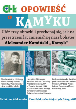 Mobilna wystawa „Opowieść o Kamyku” w sposób atrakcyjny i wymagający zaangażowania uczestników pokazuje losy oraz dokonania harcmistrza i profesora Aleksandra Kamińskiego.