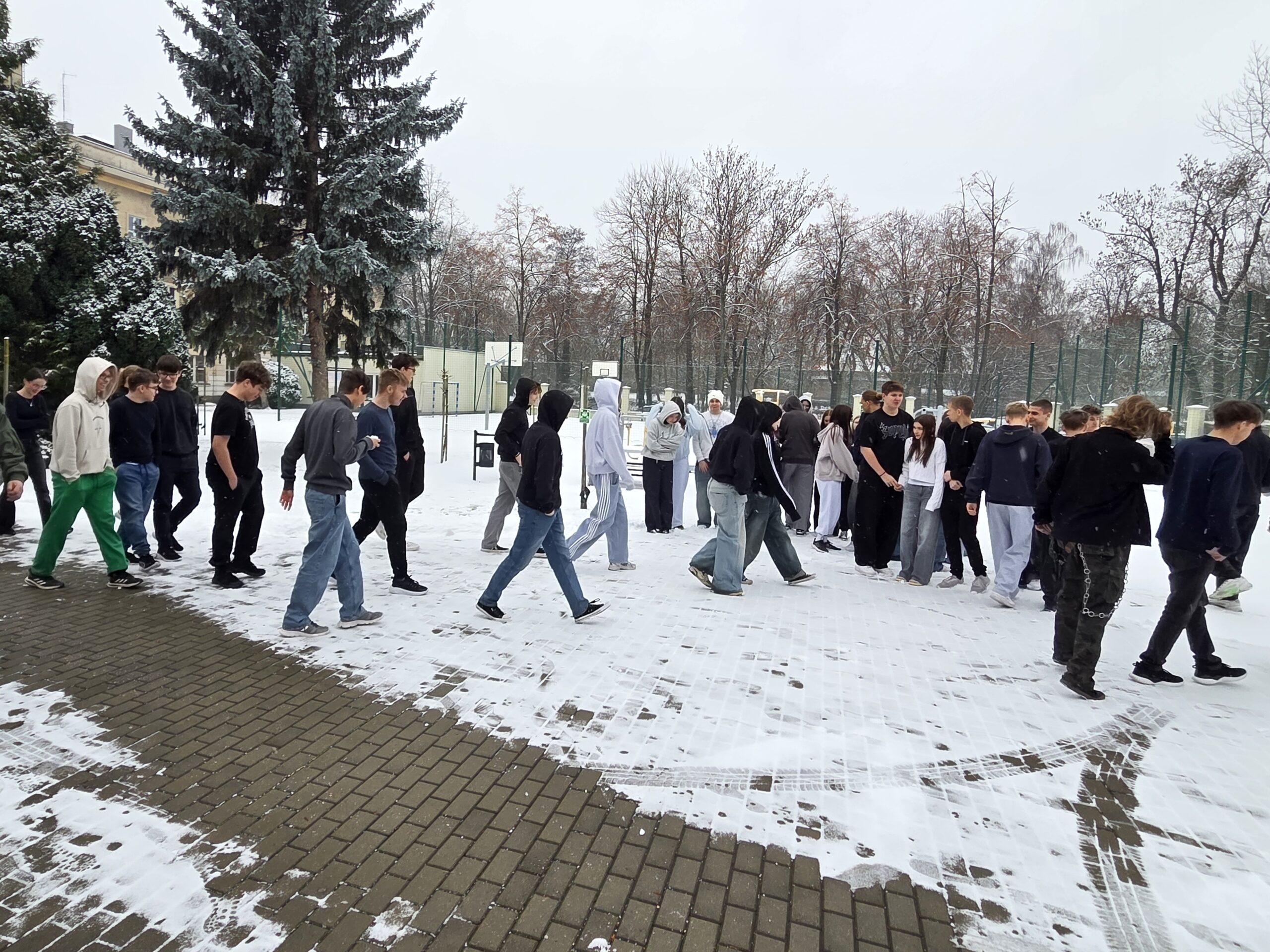 Istotnym elementem projektu było również przeprowadzenie ewakuacji. Ćwiczenie przebiegło sprawnie i bez zakłóceń, potwierdzając, że młodzież zna obowiązujące procedury i potrafi właściwie reagować w sytuacjach zagrożenia.